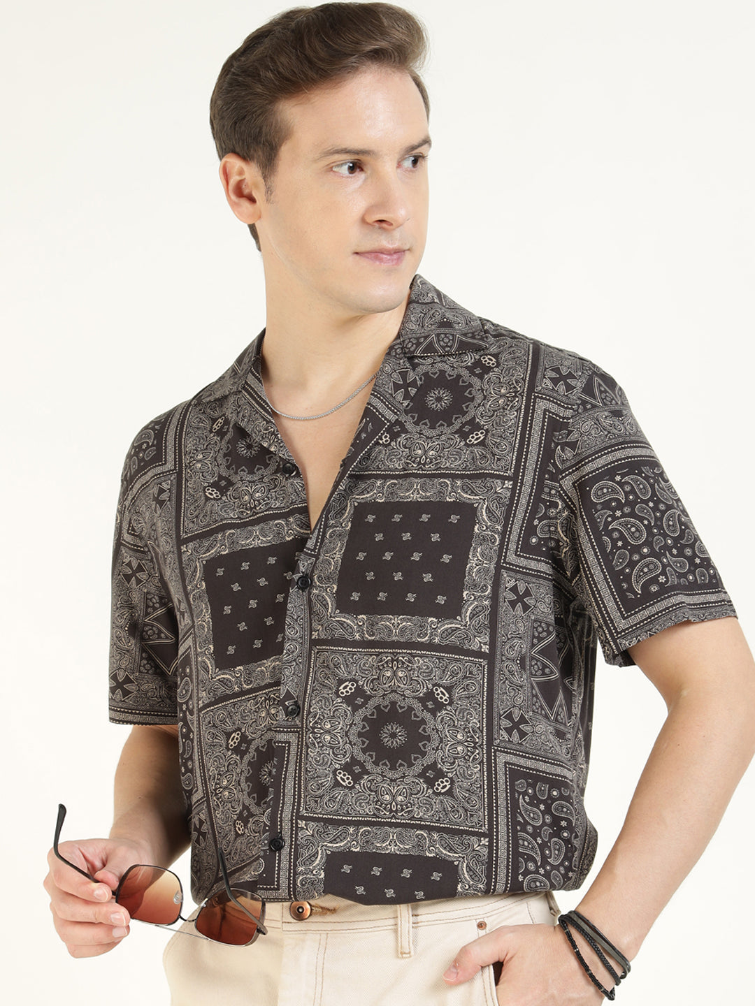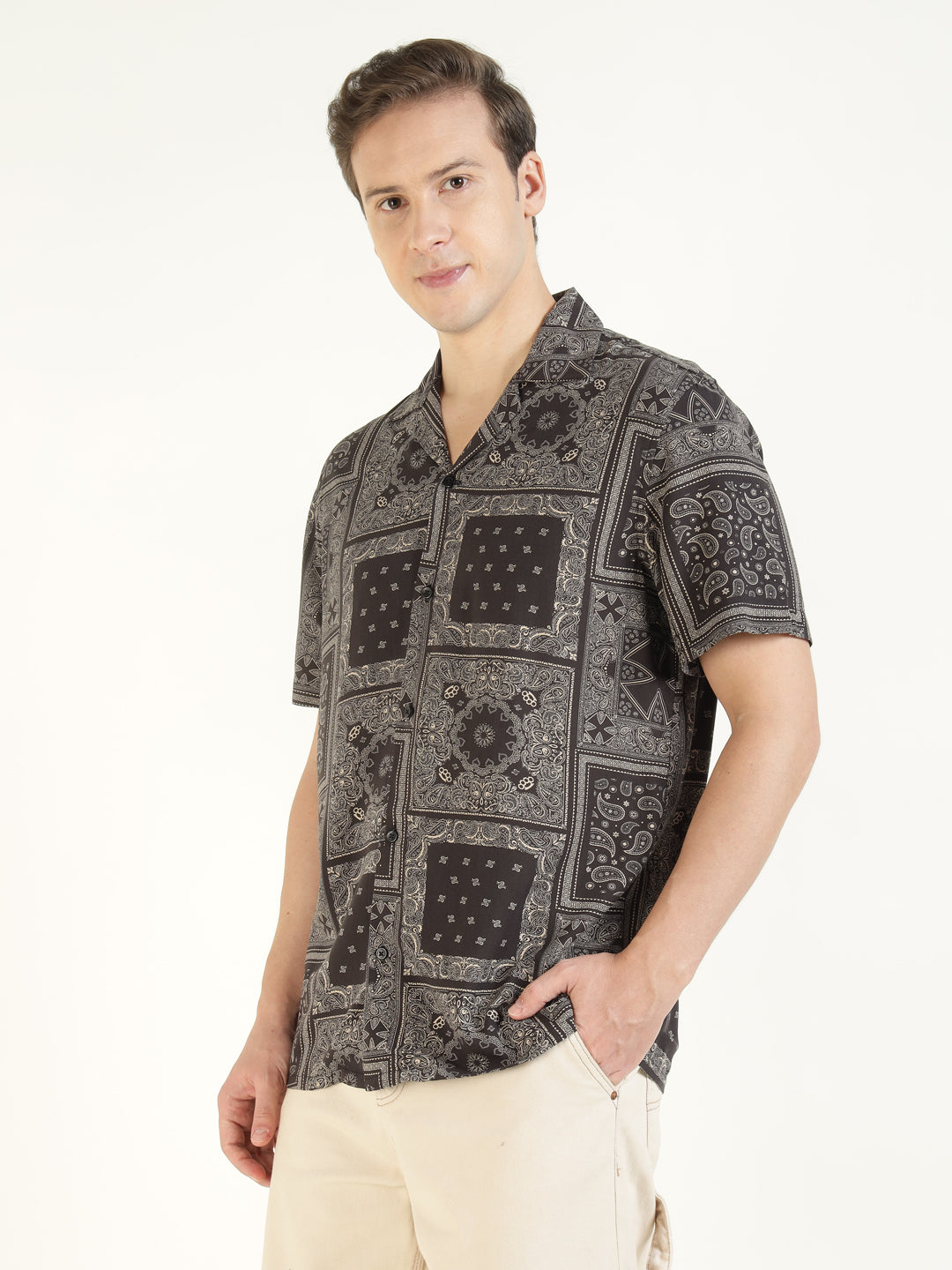 Hancock Men Black Printed Viscose Rayon Relaxed Fit Casual ShirtSkip to content