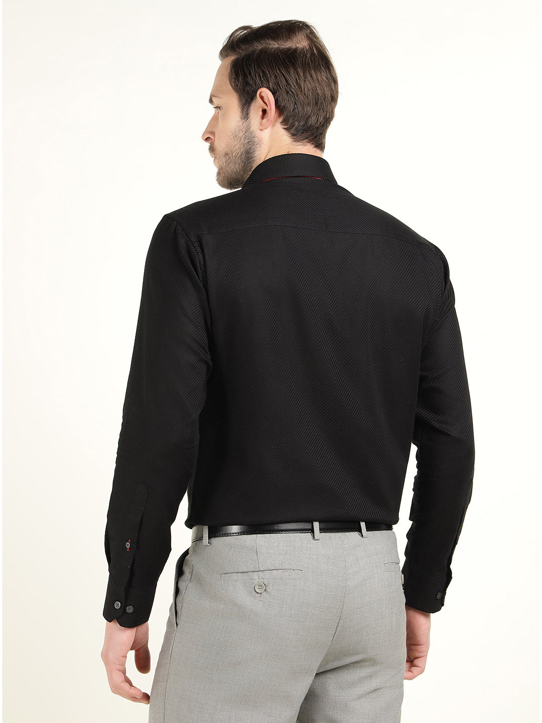Hancock Men Black Solid Dobby Slim Fit Pure Cotton Party Shirt
