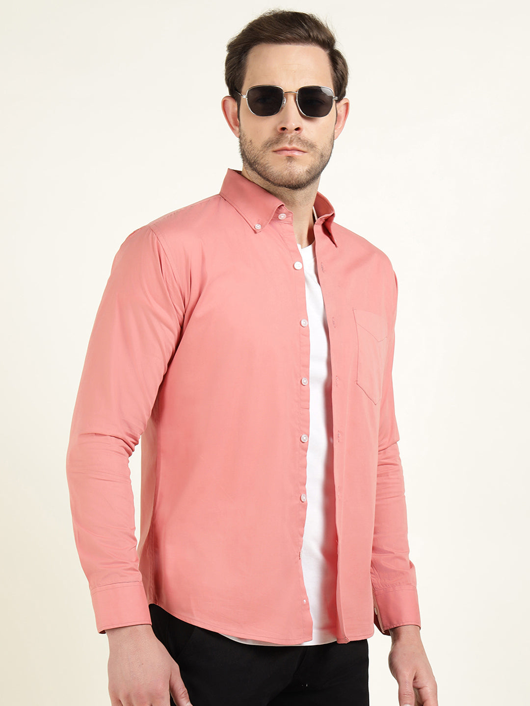 Men coral solid pure cotton slim fit formal shirt crafted for all-day comfort and a sharp, tailored look. Breathable fabric with a smooth finish makes it ideal for office and formal occasions. Team yours with a pair of black trousers and leather shoes for a sophisticated office look.