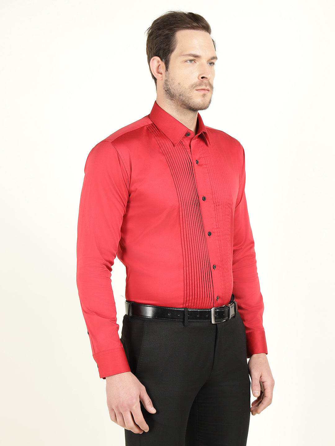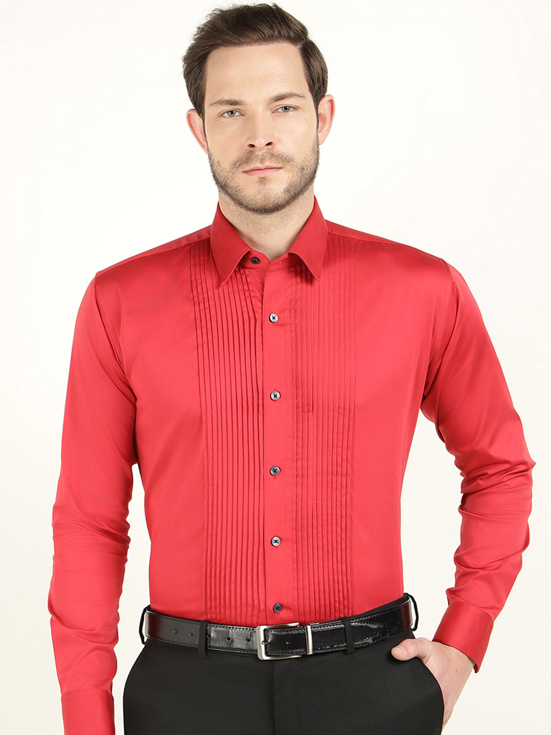Elevate your evening style with this Red Men’s Tuxedo Party Shirt, crafted from premium cotton with a smooth satin weave finish. Designed in a slim fit for a sharp silhouette, it delivers a refined sheen and all comfort, perfect for formal parties, weddings, and special occasions.Team yours with a pair of black slim fit trousers with bow and leather shoes for a classy party look.