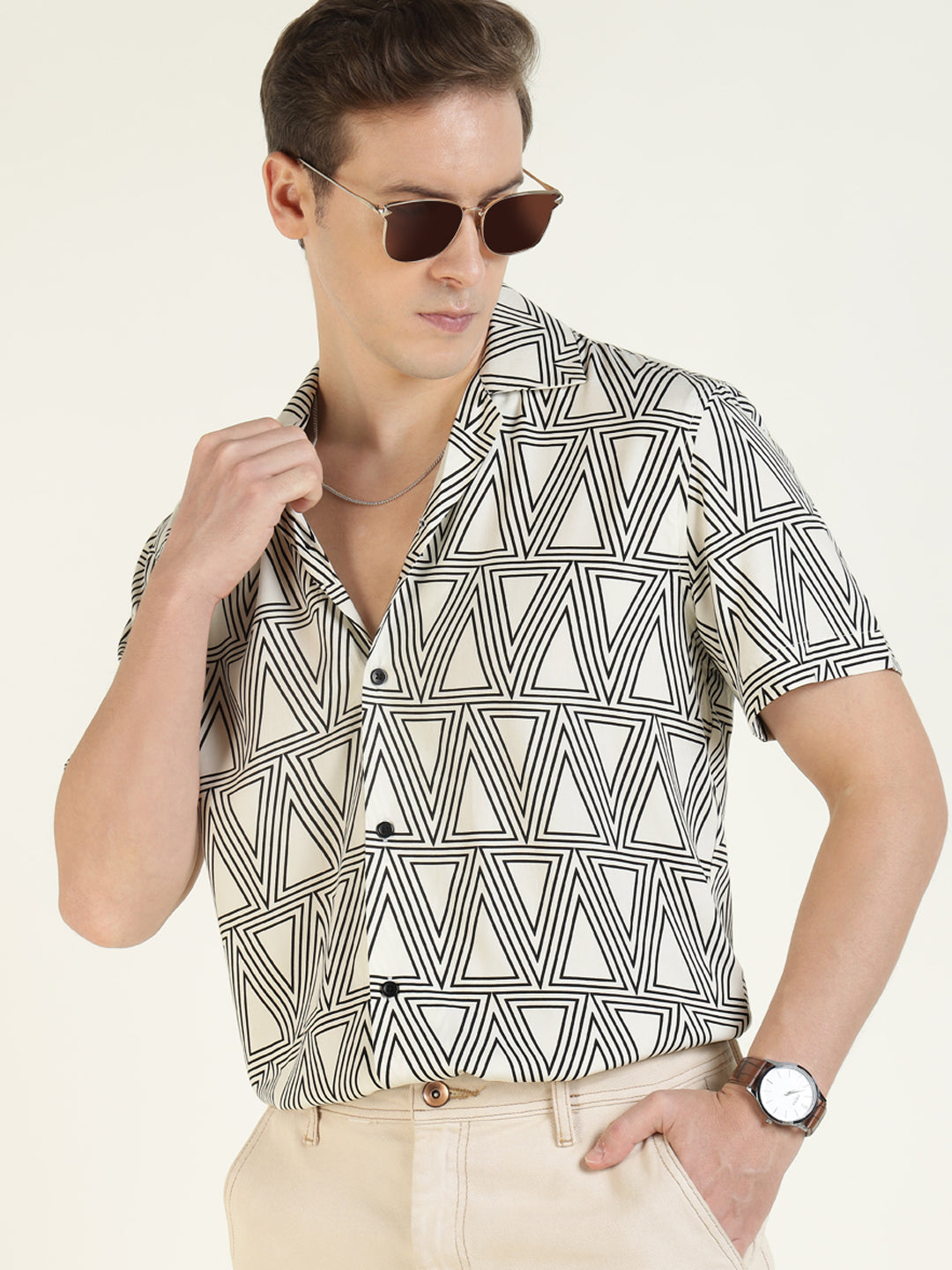Hancock Men White Printed Viscose Rayon Relaxed Fit Casual ShirtSkip to content