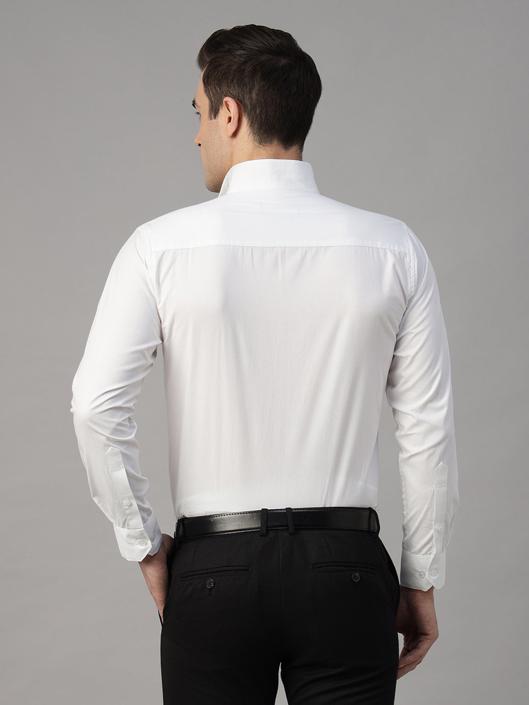 Hancock Men White Solid Pure Cotton Slim Fit Party Shirt