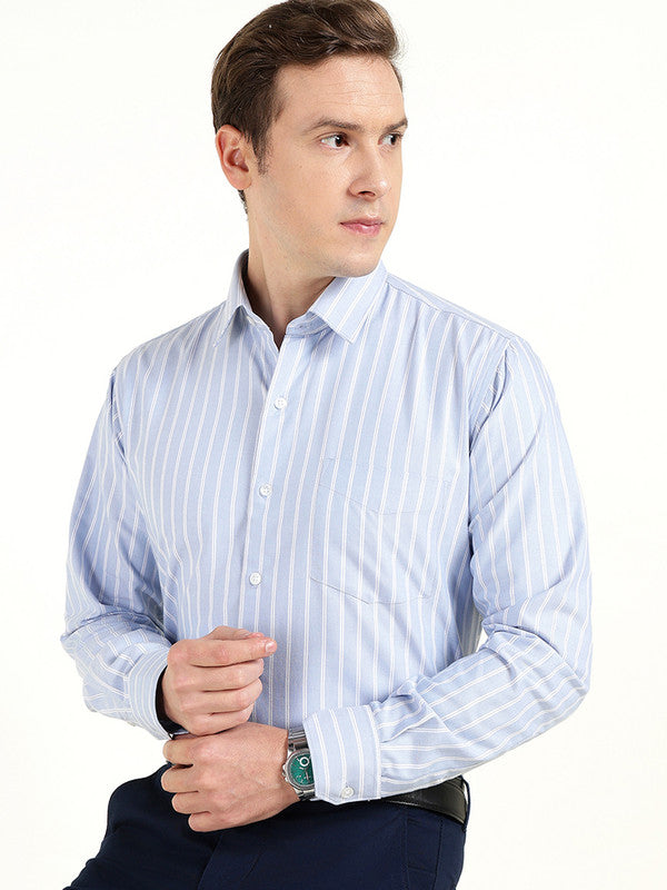 Hancock Men Blue & White Oxford Striped Wrinkle Ressistant Slim Fit Pure Cotton Formal ShirtSkip to content