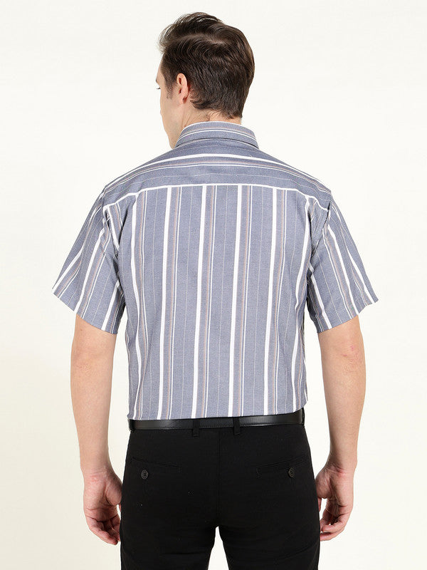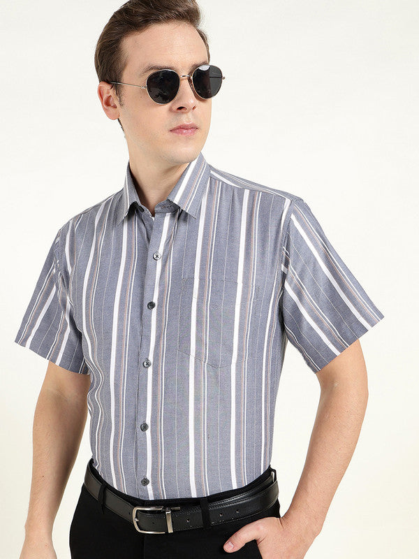 Hancock Men Grey Oxford Striped Slim Fit Pure Cotton Formal ShirtSkip to content