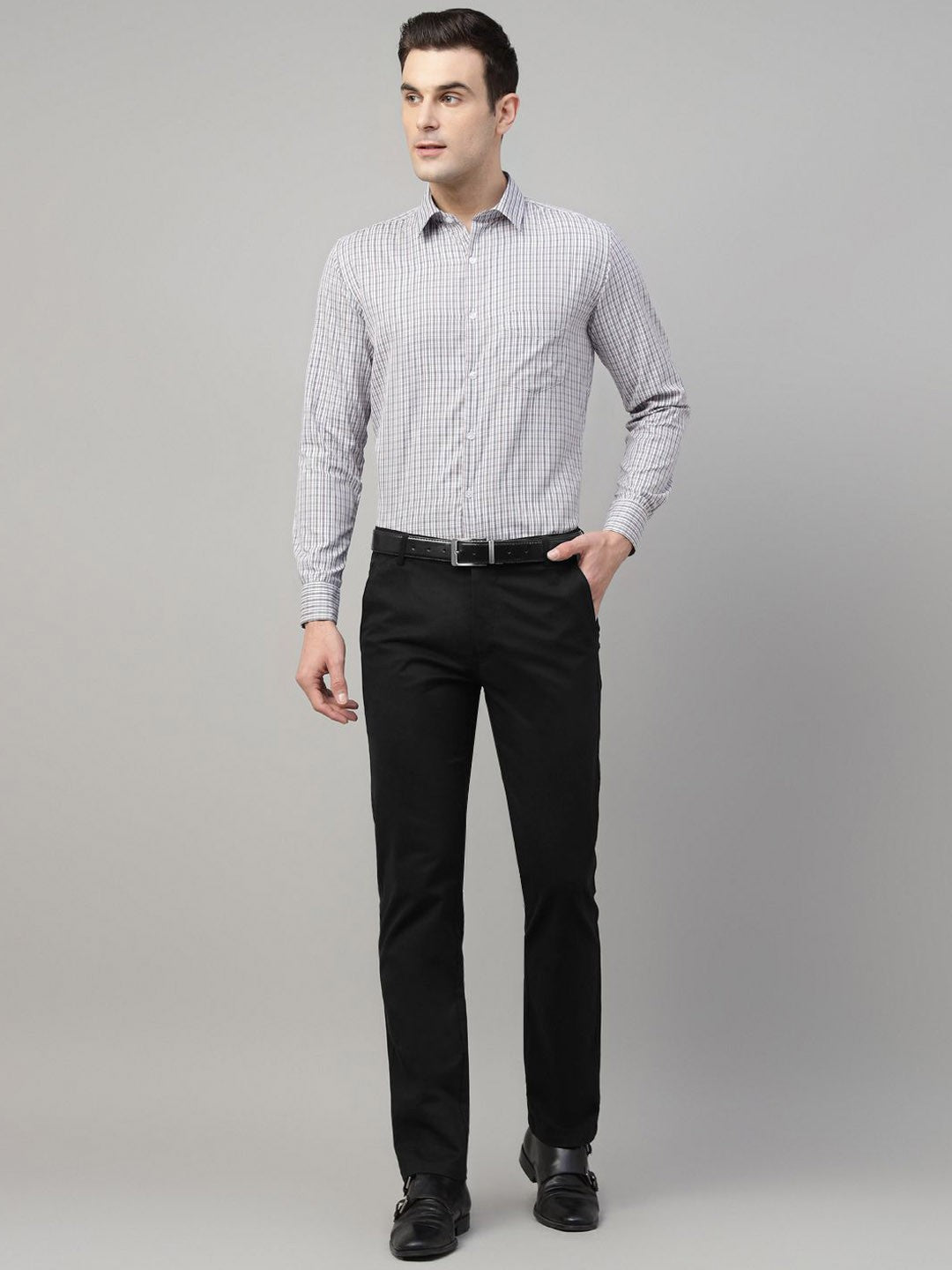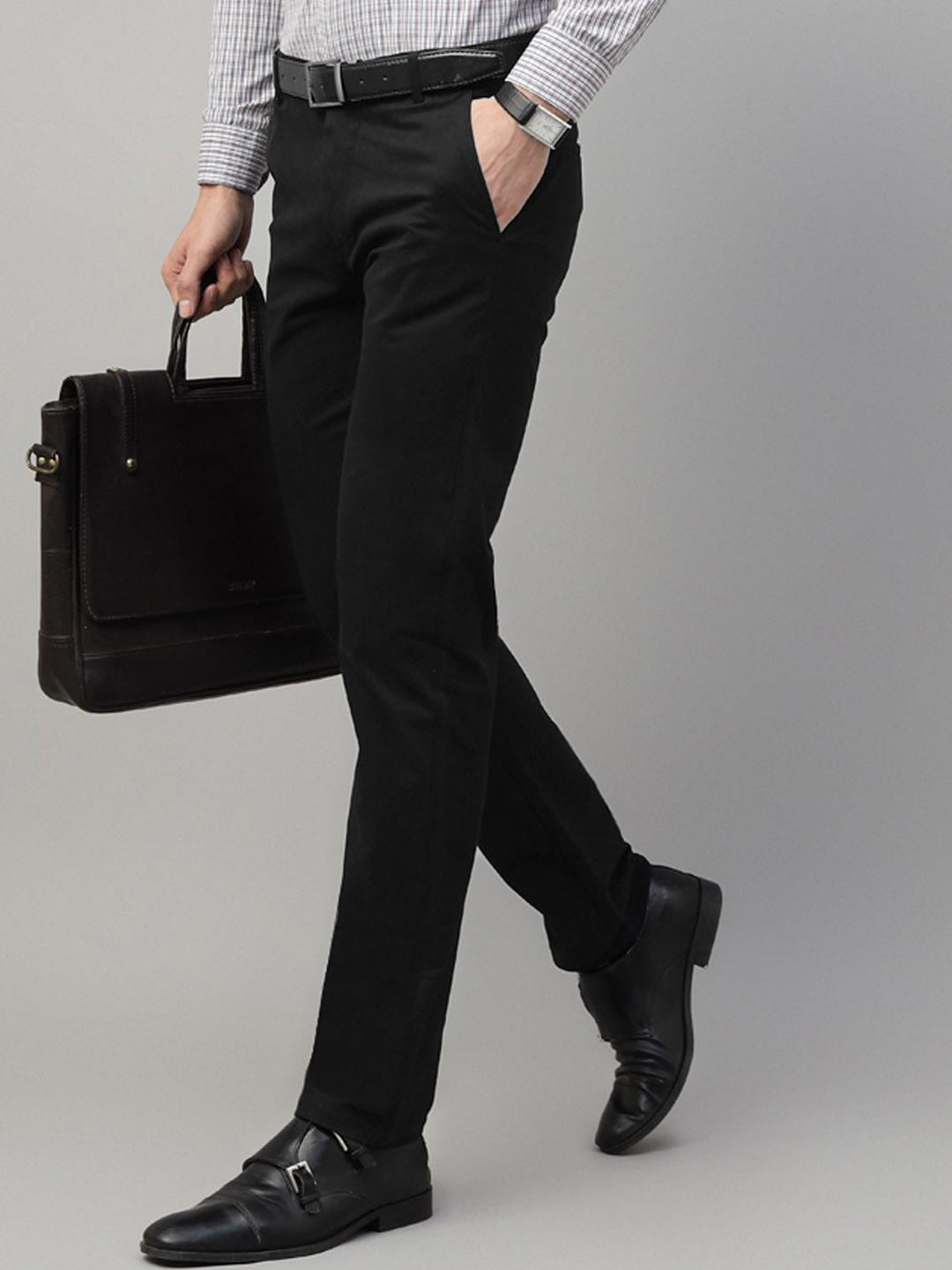 Men Black Solid Cotton Elastene Slim Fit Formal Trouser