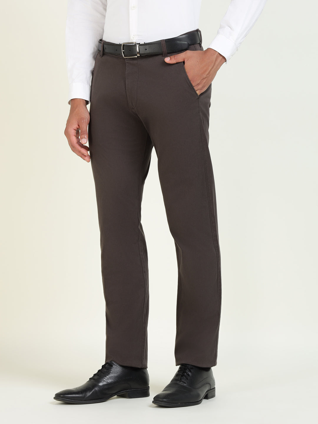 Men Coffee Solid Cotton Elastene Slim Fit Formal Trouser