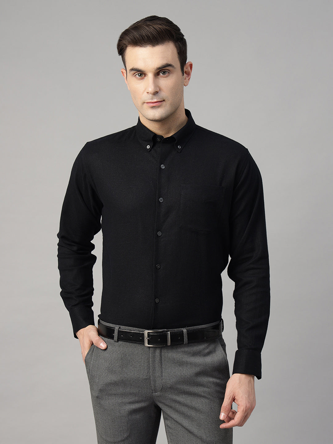 Men Black Solid Linen Blend Slim Fit Formal Shirt