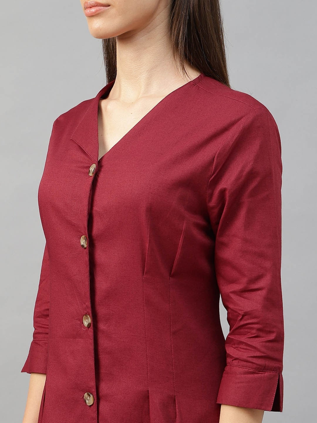 Hancock Women Rust Solid Linen Cotton Regular Fit Formal Dress