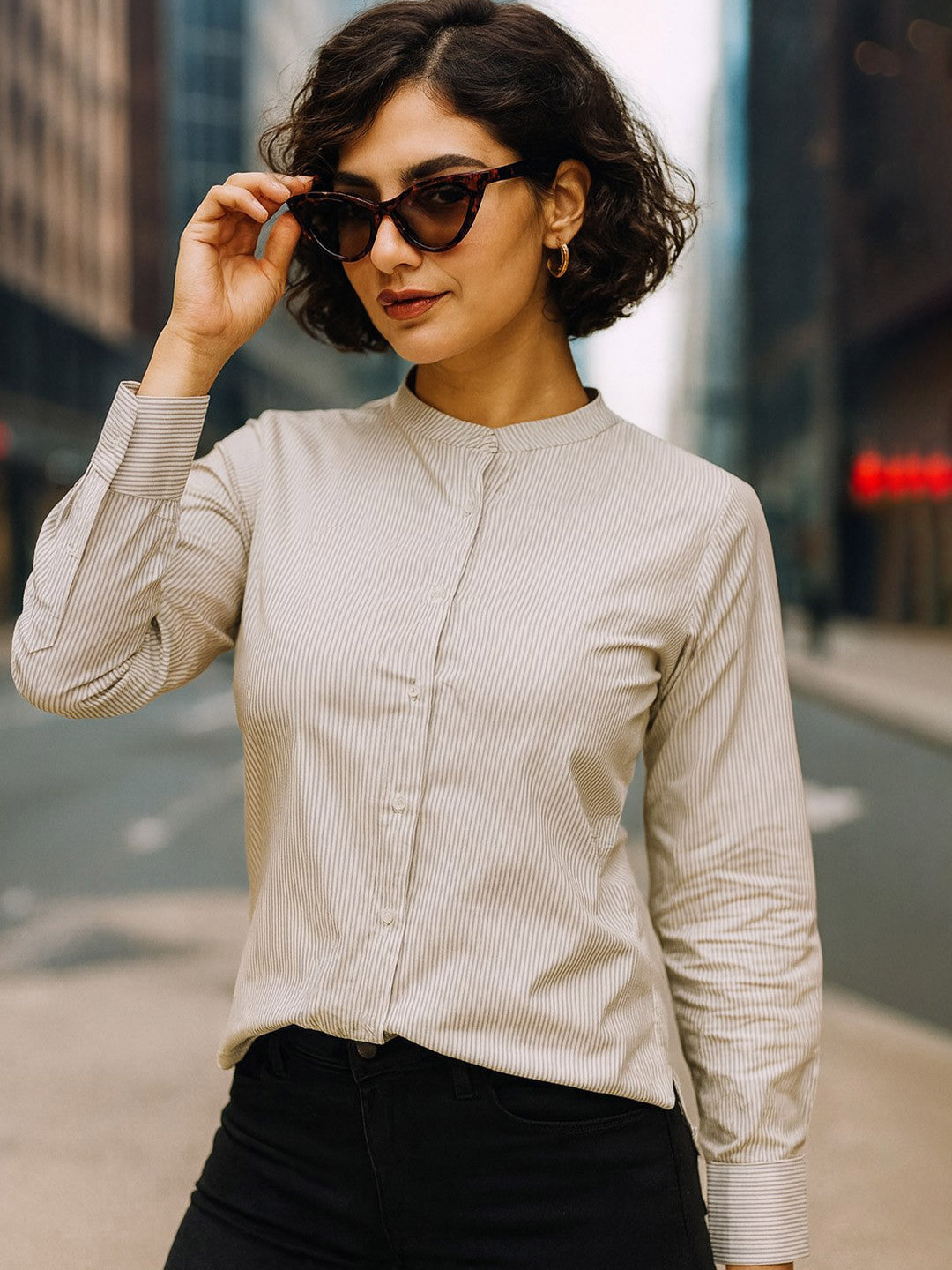Women White & Black Striped Pure Cotton Relaxed Fit Formal Shirt