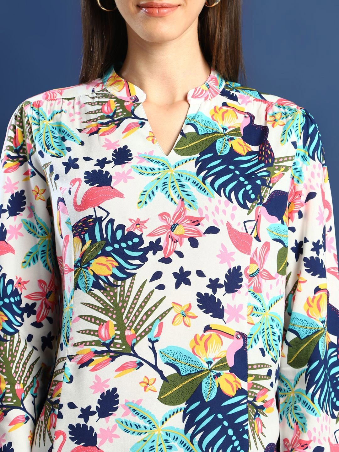 Hancock Women White & Multi Printed Viscose Rayon Regular Fit Casual TopSkip to content